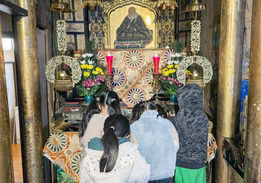 土曜学校ほうおんこう 親鸞さまの前でお焼香